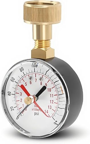Don’t overthink this. A basic analog gauge with a 3/4″ female hose thread is all you need. We like models with a lazy hand (a second needle) that stays at the highest reading—super handy for catching spikes. The ASHATA and Silverline gauges we review below are perfect examples.